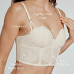 Introducing our first-ever venture out of your underwear drawer—lightly lined corset. Crafted especially for small boobs, this lacey, lightly lined, confidence-and-compliment-inducing corset will take you from bedtime to brunch to the bar to date night… and back again. It’s supportive, it’s versatile, and it’s totally snatching—helping you feel just as good as you look.