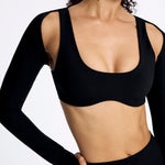 The Sculpting Shrug is made from our signature buttery-soft sculpting fabric, with curve-hugging lines that follow your form and draw the eye to your neckline. Think of it as a picture frame for what’s underneath—our Sculpting Contour Bra, designed to lift, smooth, and shape without flattening.